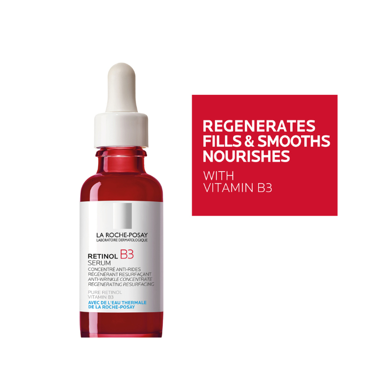 La Roche Posay Retinol B3 Serum helps skin instantly look smoother and more luminous. Progressively, the skin recovers firmness, and photoaging signs are corrected: deep wrinkles, fine lines, and uneven skin complexion. Retinol B3 formula is a unique complex of Pure and Gradual Retinol for continuous and potent anti-wrinkle action. Combined with Vitamin B3 for optimal regenerating efficacy. Optimal tolerance, clinically proven even on sensitive skin and attested by consumers*: 96% Comfortable skin, 92% Gentle for the skin.